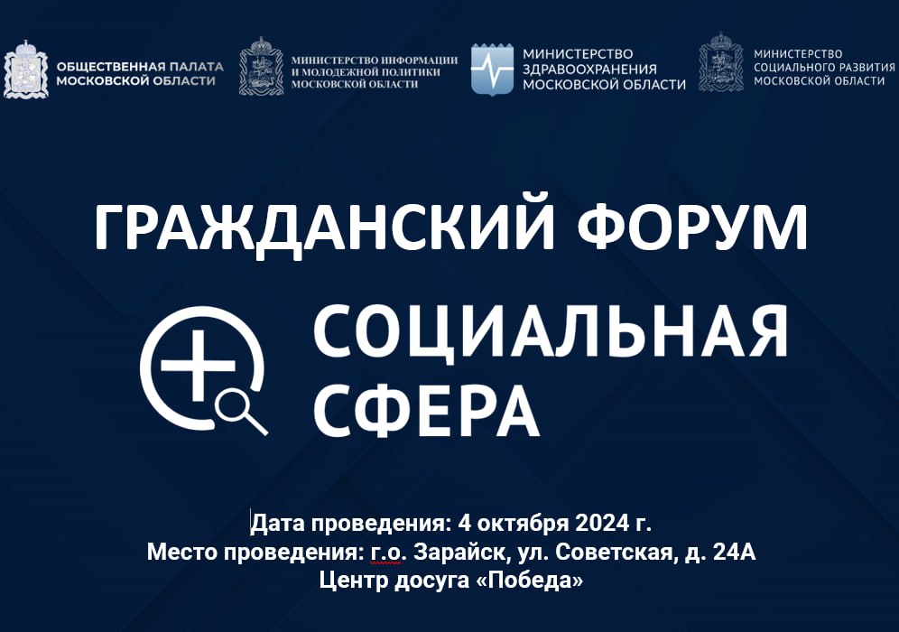 4 октября 2024 года в городском округе Зарайск состоится II гражданский форум «Социальная сфера».