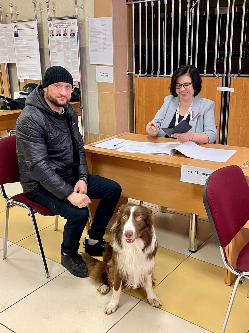 Также некоторые избиратели приходили отдать свой гражданский долг с домашними любимцами.