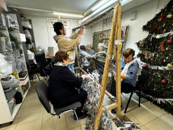 Жители вместе с Анной Владимировной сплели маскировочные сети для бойцов специальной военной операции.