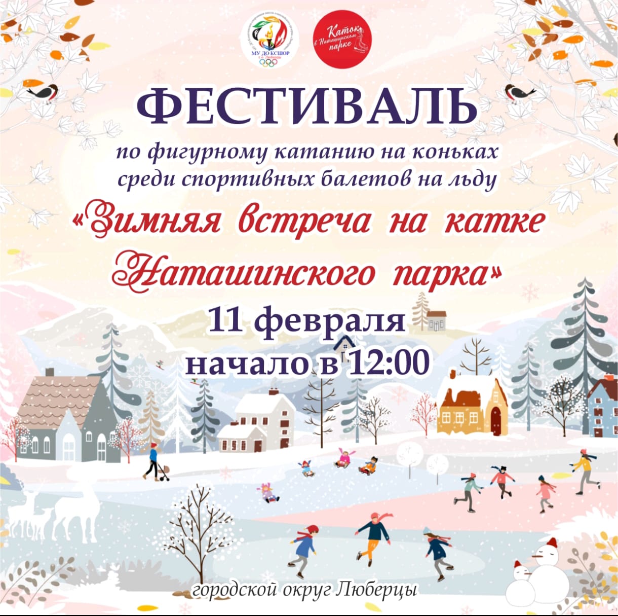 «В это воскресенье в Наташинском парке на льду состоится третий фестиваль по фигурному катанию на коньках среди детских балетных коллективов. В этом году на льду свое мастерство покажут юные спортсмены из Люберец и Красногорска. Приглашаем на красочное зрелище всех любителей этого вида спорта. Начало в 12.00. Вход свободный», - отметил Волков.