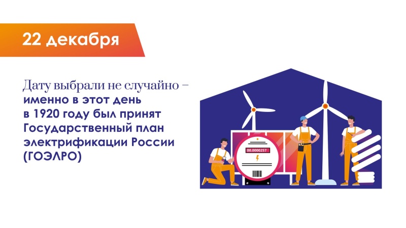 Профессиональный праздник работников энергетической промышленности утвердили в 1966 году. 22 декабря в 1920 году был принят Государственный план электрификации России (план ГОЭЛРО). С этого дня берет свое начало история энергетики нашей страны.