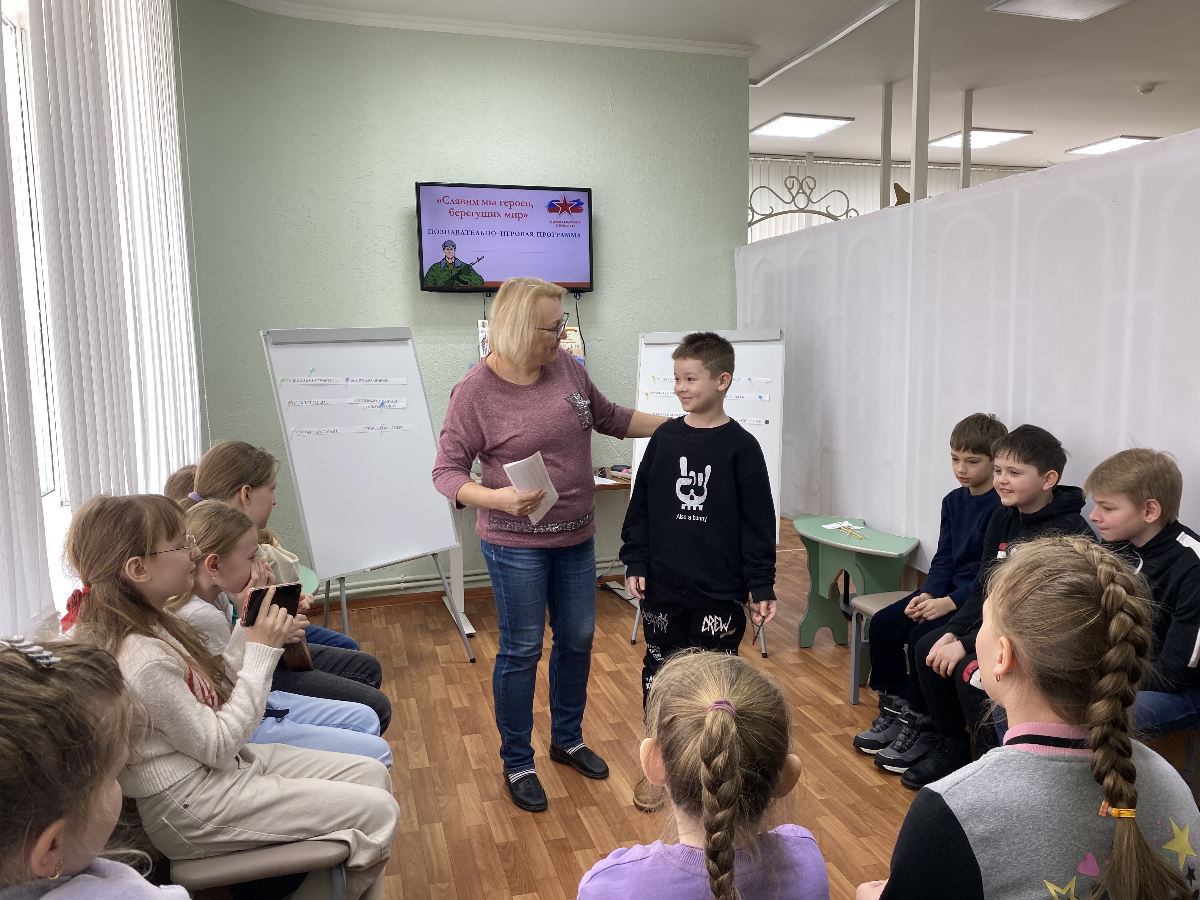 В Тучковской детской библиотеке Рузского городского округа состоялась познавательно-игровая программа «Славим мы героев, берегущих мир».