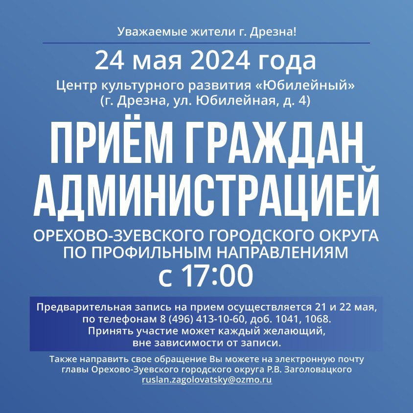 24 мая выездная администрация проведёт приём жителей в городе Дрезна.