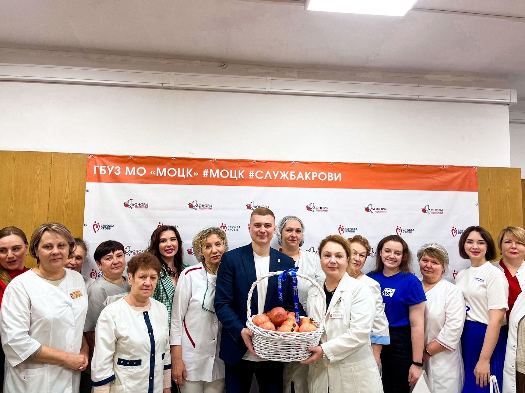 и активисты МГЕР выразили благодарность медперсоналу станции переливания крови за их самоотверженный труд, передав фруктовую корзину с гранатами.