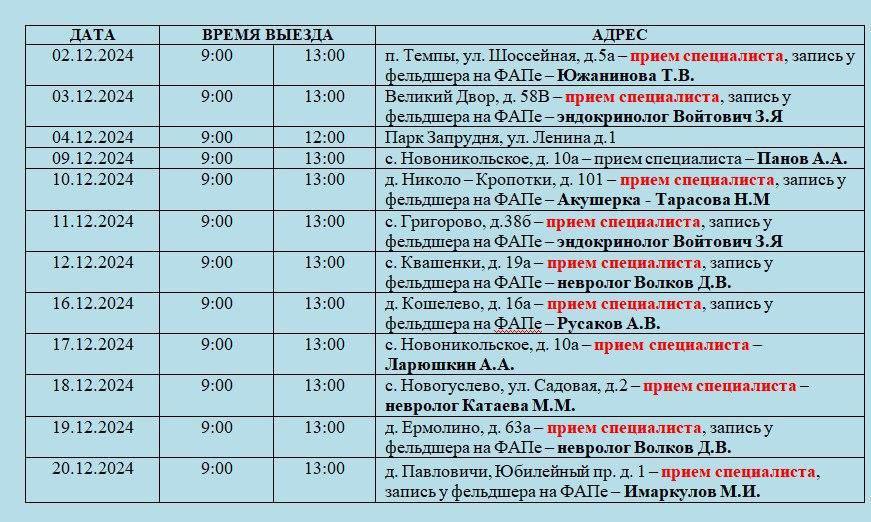 «В декабре жителям отдаленной от города местности предоставляется возможность приема и консультации со специалистами узкого профиля рядом с местом их проживания. Особенно это удобно для нашего старшего поколения, которым зачастую трудно добираться в городскую поликлинику. Такой подход помогает сократить время ожидания и повышает доступность медицинской помощи для населения», — поделился главный врач Игорь Давронов.