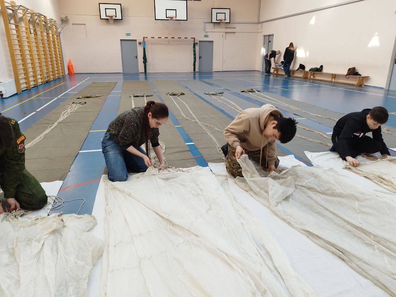 Школьники совершали очередной прыжок с парашютом, посетили несколько выставок и приняли участие в турнире по баскетболу в честь «90 летия со дня рождения Юрия Гагарина» на призы командующего ВКС.